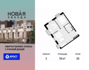 Продаётся 3-к квартира 50 кв.м. на 20-м этаже 21 этажного дома, корпус 1 - Резиденция "Вологда". Без отделки.