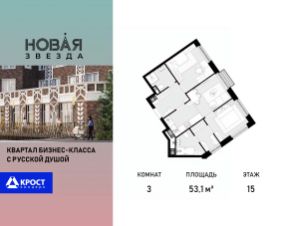 Продаётся 3-к квартира 53.1 кв.м. на 15-м этаже 21 этажного дома, корпус 1 - Резиденция "Вологда". Без отделки.