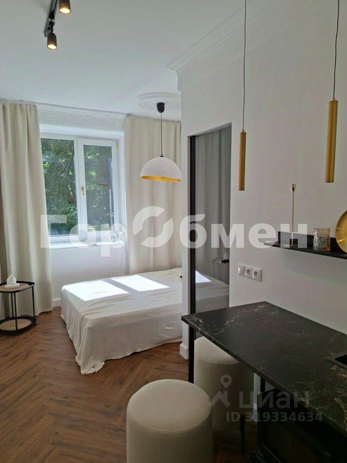 Студия-апартамент в старом зеленом районе Москвы, с дизайнерским ремонтом, мебелью и техникой, полностью готова к проживанию.