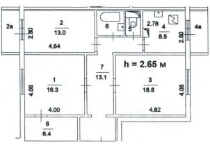 Общая площадь квартиры - 82,6 кв.м., комнаты просторные площадью - 18,9 кв.м., 16,4 кв.м., 13,1 кв.м.,