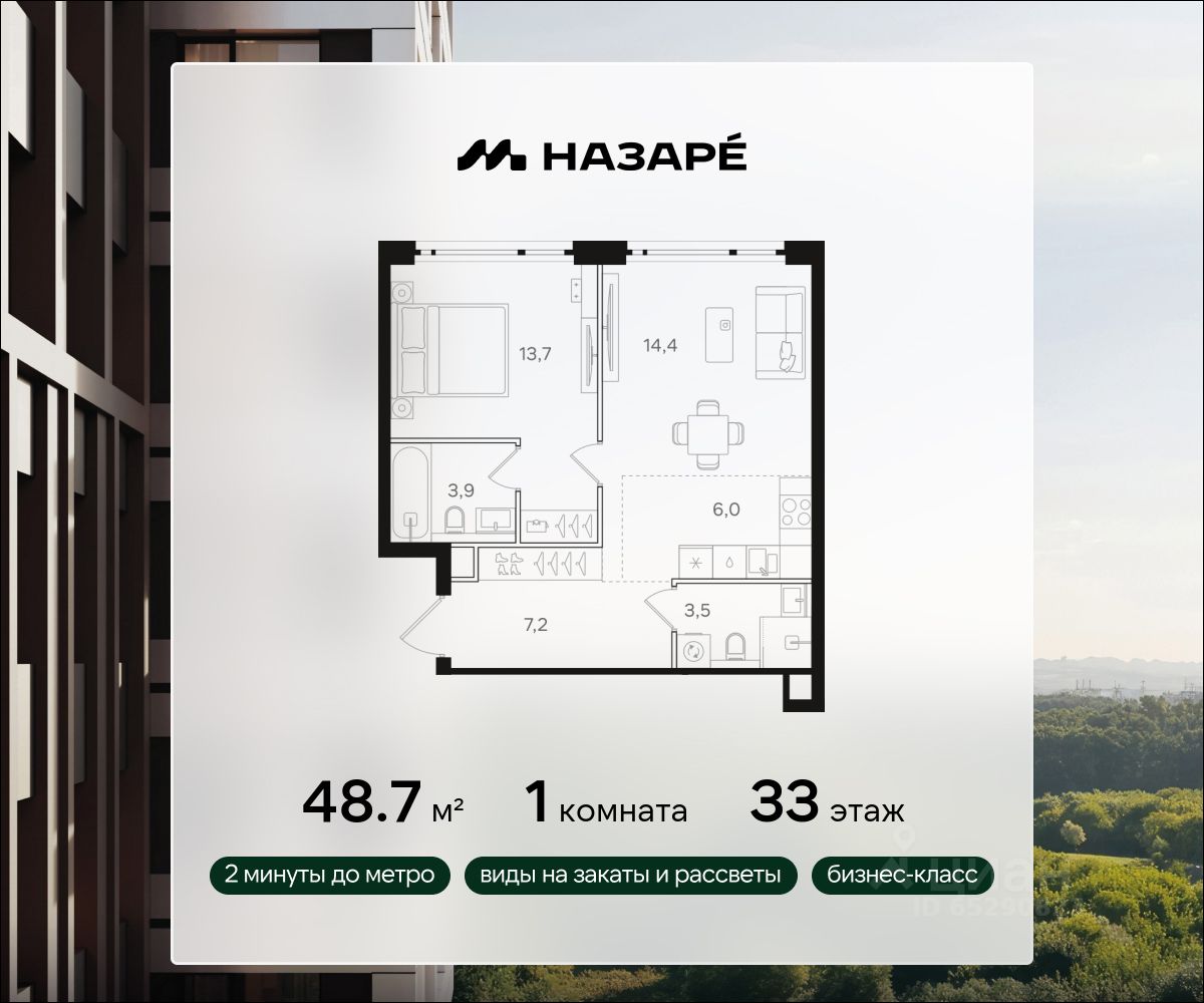 Предлагается квартира площадью 48.70 кв. м в новом современном квартале на востоке Москвы, прямо у станций метро и МЦК "Бульвар Рокоссовского". Квартира располагается в корпусе 5 на 33 этаже комплекса бизнес-класса "НАЗАРЕ'".