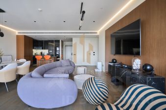 На продажу предлагаются дизайнерские видовые апартаменты в комплексе премиум-класса Поклонная, 9 в 10-ти минутах пешком от парка Победы. Апартаменты общей площадью 128 м расположены на 16-м этаже. Выполнена премиальная отделка от застройщика в стиле "Модерн" с использованием высококачественных материалов. Спланирована просторная кухня-гостиная, 2 спальни каждая со своим санузлом, холл, гостевой санузел и много мест хранения. Благодаря панорамному остеклению пространство наполнено естественным светом, открываются живописные виды на город и на Кутузовский проспект. Квартира полностью укомплектована мебелью и техникой премиальных производителей.