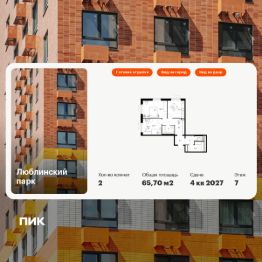 Продаётся 2-комн. квартира площадью 65,7 кв.м на 7 этаже 25 этажного дома (Корпус 19, Секция 1) проекта ПИК Люблинский парк. Светлый просторный подъезд на уровне земли, функциональная планировка, большие окна, c отделкой.