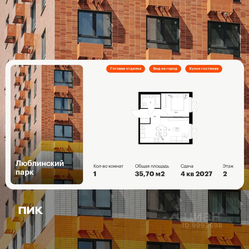 Продаётся 1-комн. квартира площадью 35,7 кв.м на 2 этаже 25 этажного дома (Корпус 19, Секция 1) проекта ПИК Люблинский парк. Светлый просторный подъезд на уровне земли, функциональная планировка, большие окна, c отделкой.