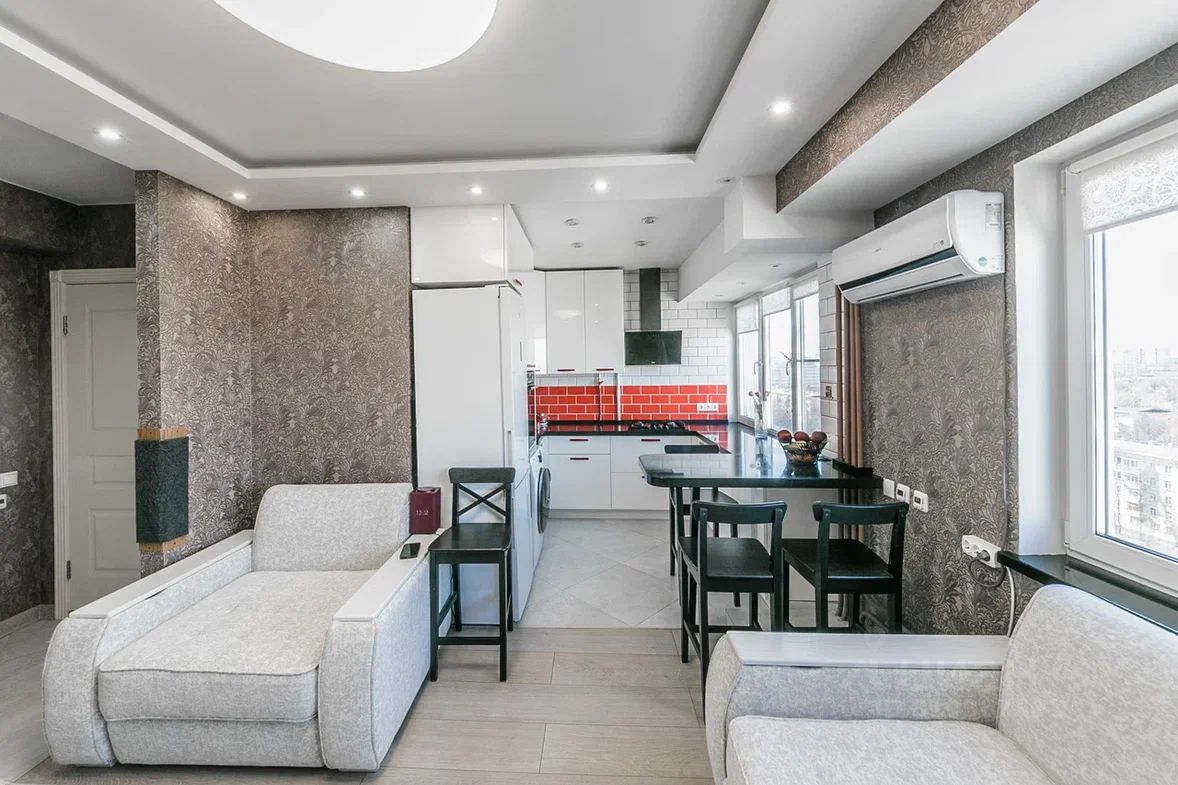 В квартире сделан дизайнерский ремонт, созданы комфортные условия для жизни. Светлые и просторные комнаты, высота потолков — 2.64 метра, что добавляет дополнительное ощущение простора. Кухня объединена с гостиной и оборудована всем необходимым для приготовления и приема пищи. Санузел совмещенный и современный, оснащен качественной сантехникой. Окна выходят как во двор, так и на улицу, поэтому в квартире всегда светло и уютно.