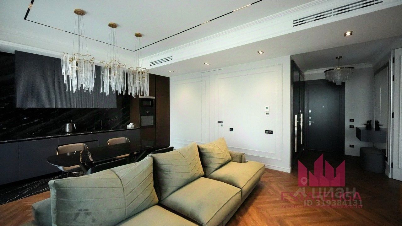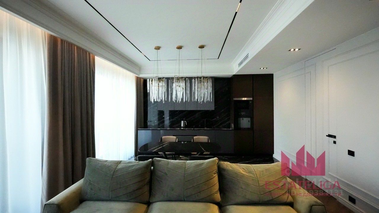Просторная и светлая квартира с современной планировкой: отдельная спальня, большая кухня-гостиная, гардеробная. Выполнен стильный дизайнерский ремонт с использованием качественных материалов. Панорамные окна, вид на город с 32 этажа — особенно эффектен вечером. Высокие потолки, встроенная техника и мебель.