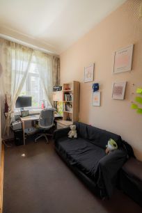 Из окон открывается прекрасный вид на двор и улицу, а также имеется балкон, где можно наслаждаться свежим воздухом. Квартира требует ремонта, что даёт новым владельцам уникальную возможность обустроить её по своему вкусу и предпочтениям.