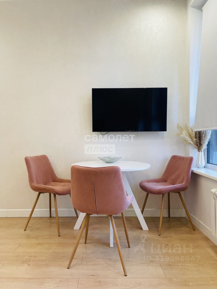 Планировка квартиры: просторная кухня-гостиная с обеденной зоной и местом отдыха, спальня, ванная комната.