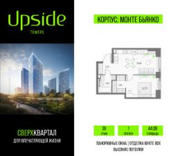Продаётся 1-комнатная квартира площадью 44.09 кв.м на 36 этаже 46 этажного корпуса Монте Бьянко в квартале небоскребов "Upside Towers". В квартире отделка White-box, c видом на Внутренний двор, корпус Эверест , Ландшафтный парк, Центр, Москва-Сити. Номер квартиры Г3606.