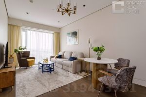 Апартаменты полностью готовы к заселению: выполнена дизайнерская отделка по индивидуальному дизайн-проекту и с использованием дорогих и качественных материалов. Кухня от итальянского бренда Valcucine, в спальнях — кровати Baxter, в гостиной зоне — уникальная подвесная композиция Quid от Poliform, свет представлен люстрами от Henge и Vistosi.