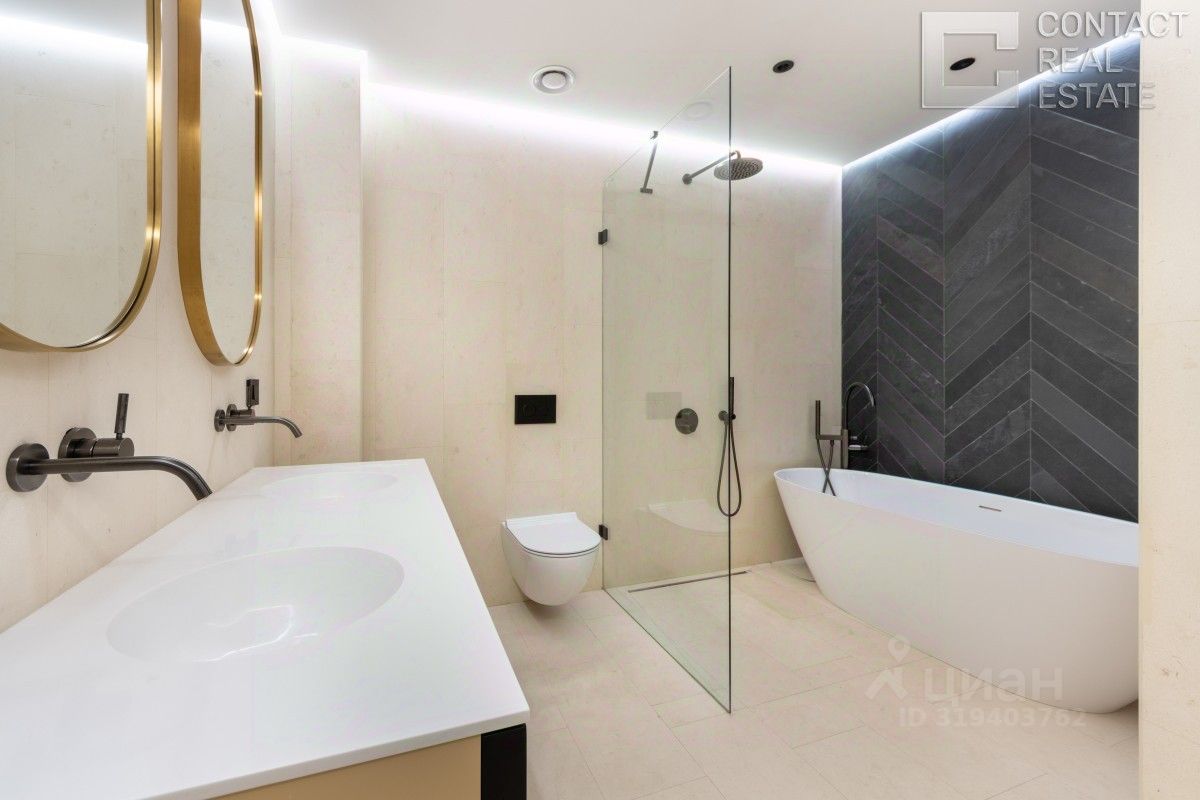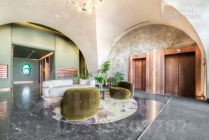 Апартаменты полностью готовы к заселению: выполнена дизайнерская отделка по индивидуальному дизайн-проекту и с использованием дорогих и качественных материалов. Кухня от итальянского бренда Valcucine, в спальнях — кровати Baxter, в гостиной зоне — уникальная подвесная композиция Quid от Poliform, свет представлен люстрами от Henge и Vistosi.