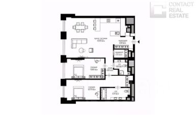 Комфортная планировка:- просторная кухня-столовая-гостиная,- мастер-спальня с гардеробной и ванной комнатой, - еще одна уютная отдельная спальня,- гардеробная,- санузел с душевой,- постирочная.