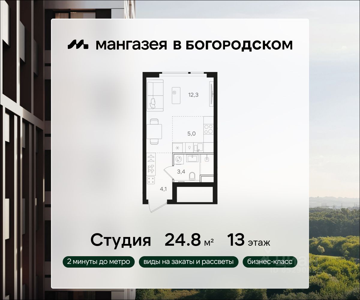 Предлагается квартира площадью 24.80 кв. м в новом современном квартале на востоке Москвы, прямо у станций метро и МЦК "Бульвар Рокоссовского". Квартира располагается в корпусе 2 на 13 этаже комплекса бизнес-класса "Мангазея в Богородском".