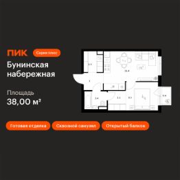 Продаётся 1-комн. квартира площадью 38 кв.м на 2 этаже 16 этажного дома (Корпус 2.6/1.4, Секция 4) проекта ПИК Бунинская набережная. Светлый просторный подъезд на уровне земли, функциональная планировка, большие окна, c отделкой.