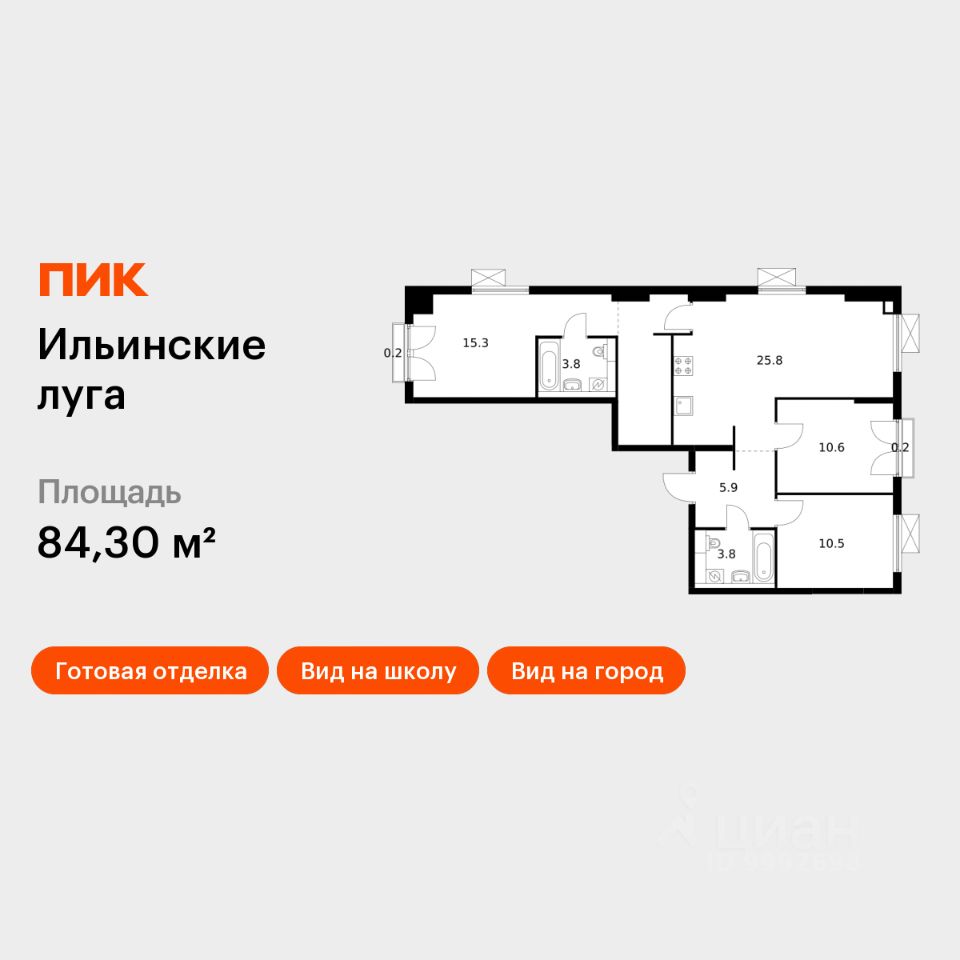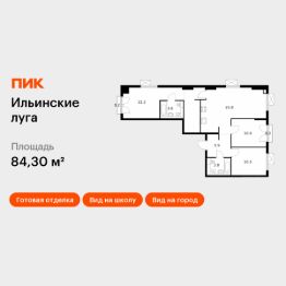 Продаётся 3-комн. квартира площадью 84,7 кв.м на 3 этаже 9 этажного дома (Корпус 2.9, Секция 5) проекта ПИК Ильинские луга. Светлый просторный подъезд на уровне земли, функциональная планировка, большие окна, c отделкой.
