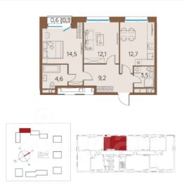 Представляем 2-комнатную квартиру площадью 56,9 м² в жилом комплексе Остров 6 квартал, секция 2, 18 этаж.