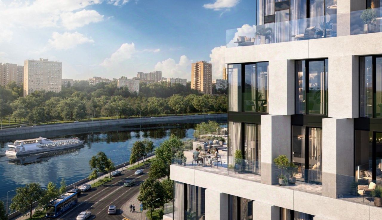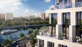 Все квартиры в проекте имеют максимальное остекление с видом на реку, а выступающие пилоны позволяют сохранить приватность. Активный многогранный рельеф позволил архитекторам скомпоновать оконные проёмы таким образом, чтобы виды на набережную открывались почти из всех квартир комплекса. Уникальные квартиры с 8 балконами на разные стороны света, не менее эффектные решения — кабинеты и гардеробные с отдельными балконами, а ванные комнаты с панорамными окнами и собственным балконом.