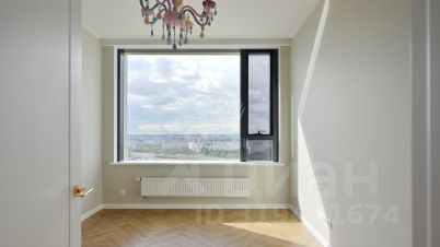 Видовая квартира с двумя спальнями общей площадью 76 м² в комплексе бизнес-класса "Небо" в Раменках. Просторная квартира с готовой премиальной отделкой расположена на 28-м этаже в башне Tandem. Интерьер оформлен в современном стиле.
