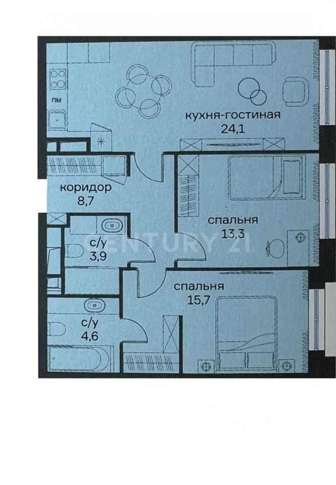 Общая площадь: 70,3 кв. м — идеальное пространство для жизни