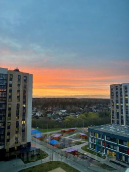 Тихий двор без машин окна выходят на новый детский сад, игровые и спортивные площадки.