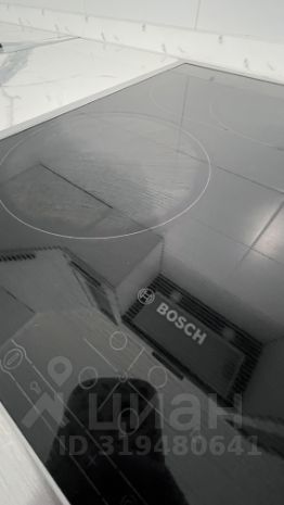 Кухня: Варочная панель Bosch, вытяжка, духовой шкаф, обеденный стол.