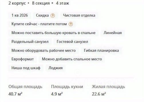 Переуступка еврооднушки с улучшенной чистовой отделкой "Чизкейк" во втором корпусе (монолитно-панельный). После 15 октябре 2025 года ДДУ будет расторгнут и такой вариант уже не удастся приобрести по данной цене.