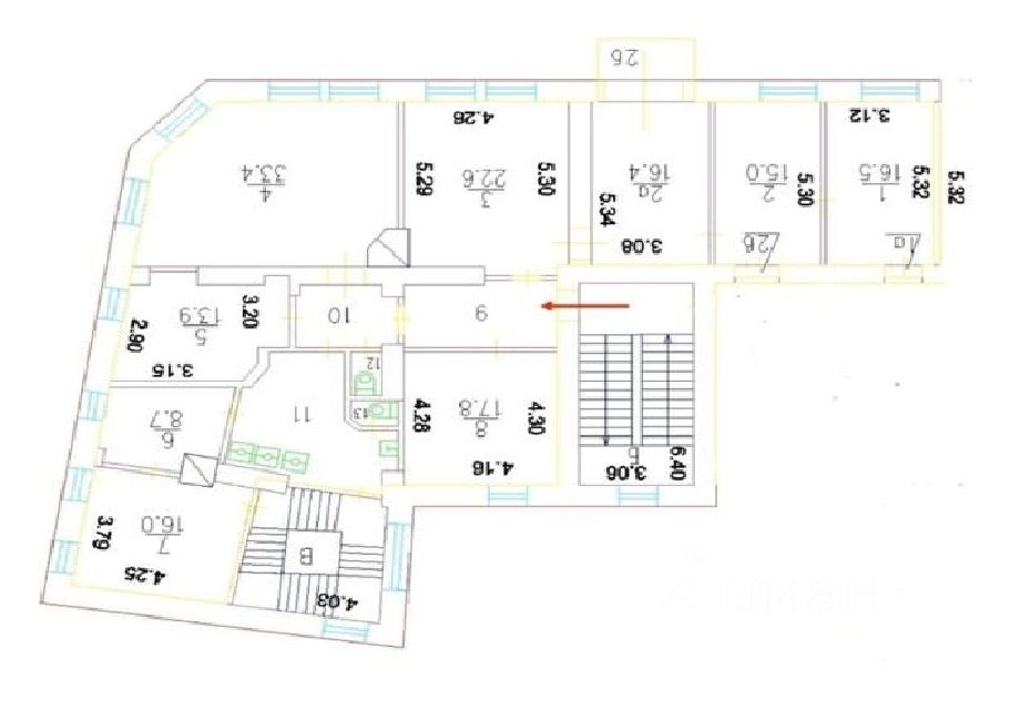 — планировка квартиры: 9 спален, кухня гостиная, постирочная, 5 санузлов.