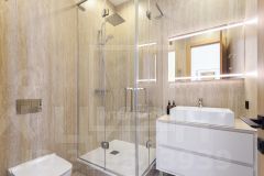 Стекла наибольшей прочности в душевых и гигиенические души в каждом с/у. Стеклянное покрытие обеденного стола по персональному заказу.