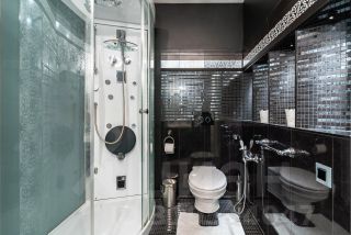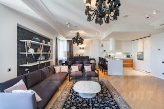 В квартире предусмотрено: кухня-гостиная с зоной отдыха; 3 спальни, оборудованные местами для хранения; 2 санузла: в одном - ванная, душевая, сауна, унитаз, биде и 2 раковины, в другом - душевая, унитаз и раковина; 2 гардеробные комнаты (в основной спальне и в прихожей); кладовое помещение в кухонной зоне. Квартира оснащена кондиционерами. Ориентация окон на восток - квартира светлая, но при этом не будет палящего солнца во второй половине дня.
