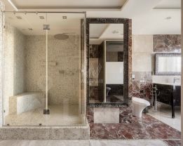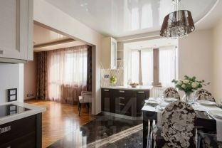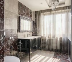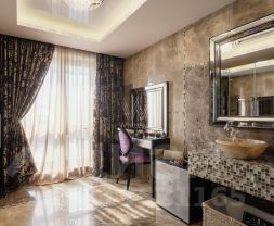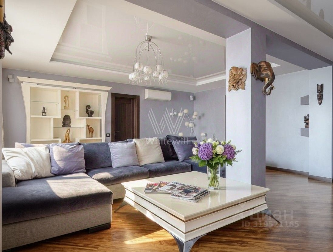 Просторная квартира площадью 184 м² в доме "Нагатинская, 15" на 12-м этаже. Выполнена авторская отделка в стиле современной классики, в оформлении использованы фактуры мрамора и дерева. Многоуровневые потолки украшают дизайнерские люстры. Квартира меблирована и укомплектована бытовой техникой.