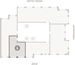 Зона ресепшн с витражным остеклением и переговорными комнатами.