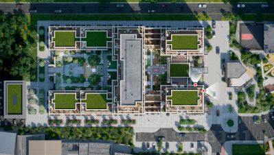 На эксплуатируемых кровлях запроектированы зелёные пространства. В инфраструктуру проекта войдут два павильона с кафетерием и детским клубом, фитнес-студия, ресторан и винотека.