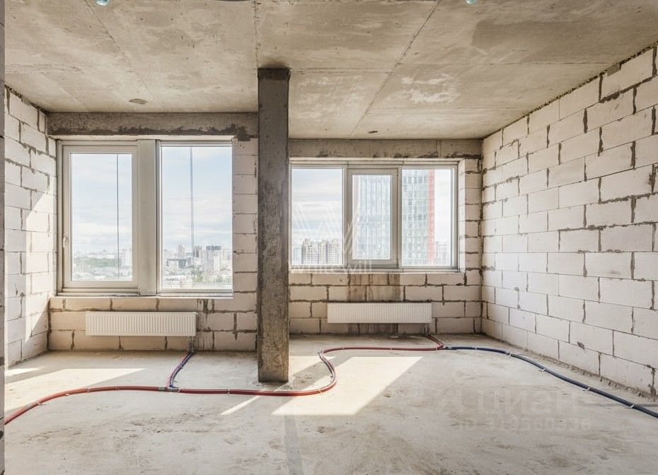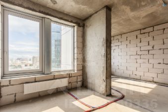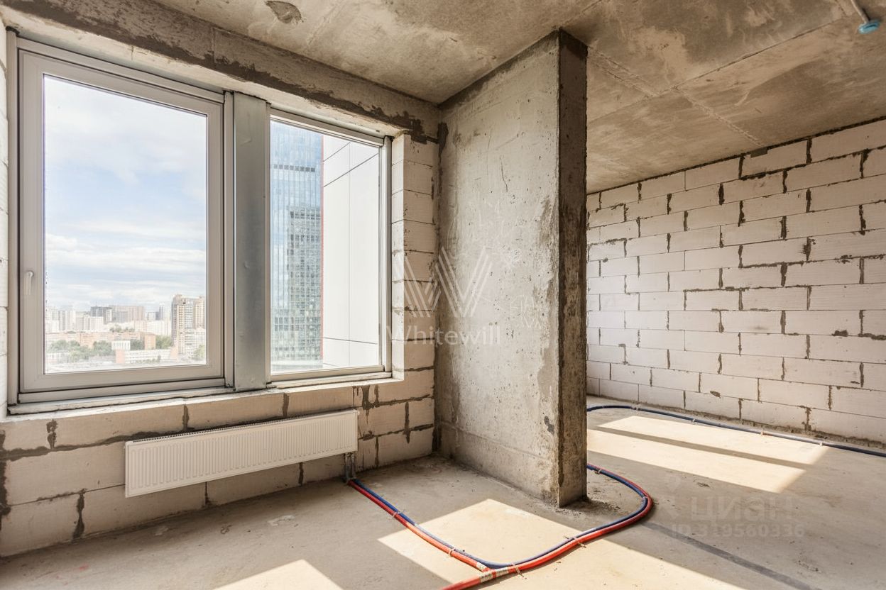 Квартира с одной спальней общей площадью 45 м² в комплексе бизнес-класса Headliner. Квартира без отделки расположена на семнадцатом этаже в корпусе 4. Возможная планировка включает кухню-гостиную, спальню, ванную комнату, гардеробную, прихожую. Из окон открывается вид на башни "Москва-Сити".