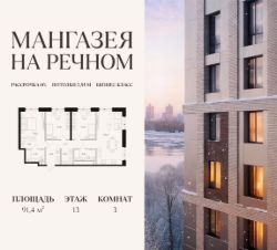 В продаже 3-к квартира площадью 91.4 м2. Функциональная планировка, кухня-гостиная, просторные санузел и гардеробная. Квартира расположена на 13-м этаже 24-этажного дома.