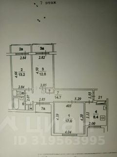 Общая площадь — 71,3кв.м (комнаты — 17,0, 13,2, 12,8 кв.м).