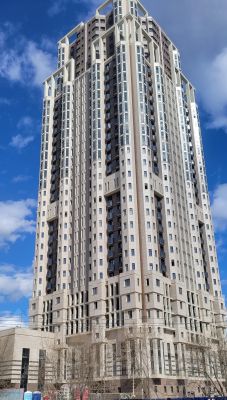Квартира расположена в Башне "В". Все окна выходят на запад (вид на бизнес центр на ул.Коштоянца). Высокий 7 этаж, жилая часть дома начинается с 5 этажа на отметке 13,5 метра от уровня земли. В доме 80% квартир семейного формата 2х и 3х комнатные. Коэффициент обеспеченности машиноместами 1:1. Количество квартир на этаже 8. В доме установлены 4 грузопассажирских лифта Sword (Китай). Благоустроенный внутренний двор с детской площадкой на эксплуатируемой кровле стилобата.