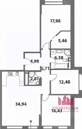 Id 54764. Просторная трехкомнатная квартира 75,64 кв.м. Отлично подойдет для большой семьи и для тех, кому важно пространство и уют. В большой кухне-гостиной будет удобно собираться за приемом пищи, играми или просмотром телевизора. Одну комнату удобно обустроить для хозяев, вторую - под детскую, гостевую или кабинет.