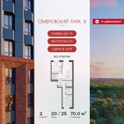 Продается 2-к квартира 70,0 кв.м. в ЖК "Семеновский парк 2" на 20-м этаже 25 этажного дома.