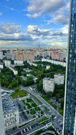 Продается просторная трехкомнатная квартира в Москве на Мичуринском проспекте, 56. Общая площадь квартиры составляет 78.2 кв. м, Евро трёшка. Кухня-гостиная занимает 26 кв. м. Расположенная на 42-м этаже 52-этажного монолитного дома, квартира отличается высокими потолками в 3.1 метра и прекрасными видами из окон, которые выходят Мичуринский проспект . Дом был построен в 2020 году.