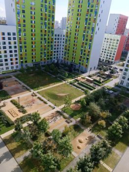 Рядом с домом 2 детских сада, частные детские сады, школа, поликлиника, магазины, кафе. В ЖК Бунинские луга все дворы большие, и закрытые от автомобилей, хорошие детские площадки, по чипу можно попасть в любой двор ЖК. В подъезде два грузовых лифта.