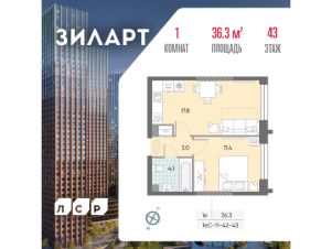 Продаётся 1-комнатная квартира в доме ЗИЛАРТ СПАРК общей площадью 36.3 кв. метров на 43 этаже.
