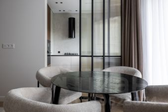 Квартира укомплектована всей необходимой мебелью и техникой: встроенный холодильник, посудомоечная машина, варочная панель, духовой шкаф, вытяжка, многоуровневый фильтр для воды. Установлены двери скрытого монтажа.