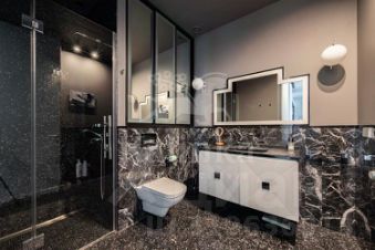 Дизайнерская отделка выполнена в соответствии с проектом архитектурно-дизайнерского бюро Broe Екатерины Вальц. В квартире установлена итальянская мебель от известных брендов Baxter, Porada, Cattelan italia. Также использована сантехника от Villeroy&Boch, бытовая техника от ведущих производителей, а также авторские люстры и светильники.