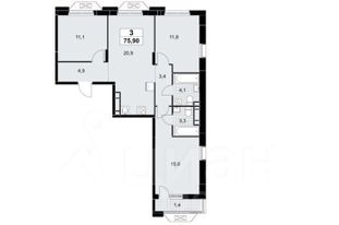 Продаётся просторная трёхкомнатная квартира в ЖК "Бунинские Кварталы" с предчистовой отделкой. White box