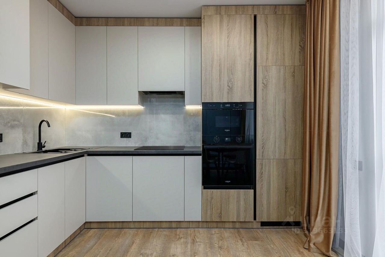 • просторная кухня с кухонным столом, встроенной кухонной техникой (холодильник Whirlpool, варочная панель, духовой шкаф, посудомоечная машина)
