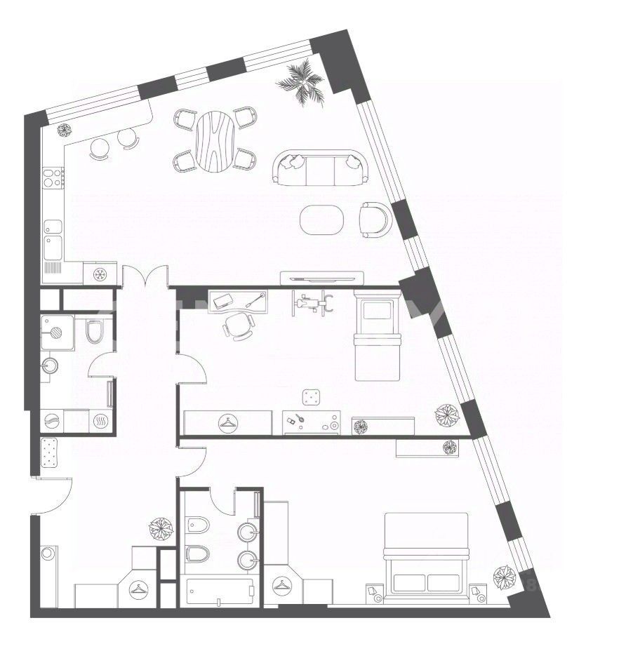 Продаётся просторная 3-комнатная квартира без отделки 129м2 в жилом комплексе Sky House в центре Москвы — в престижном, зелёном и архитектурно насыщенном районе Якиманка.
