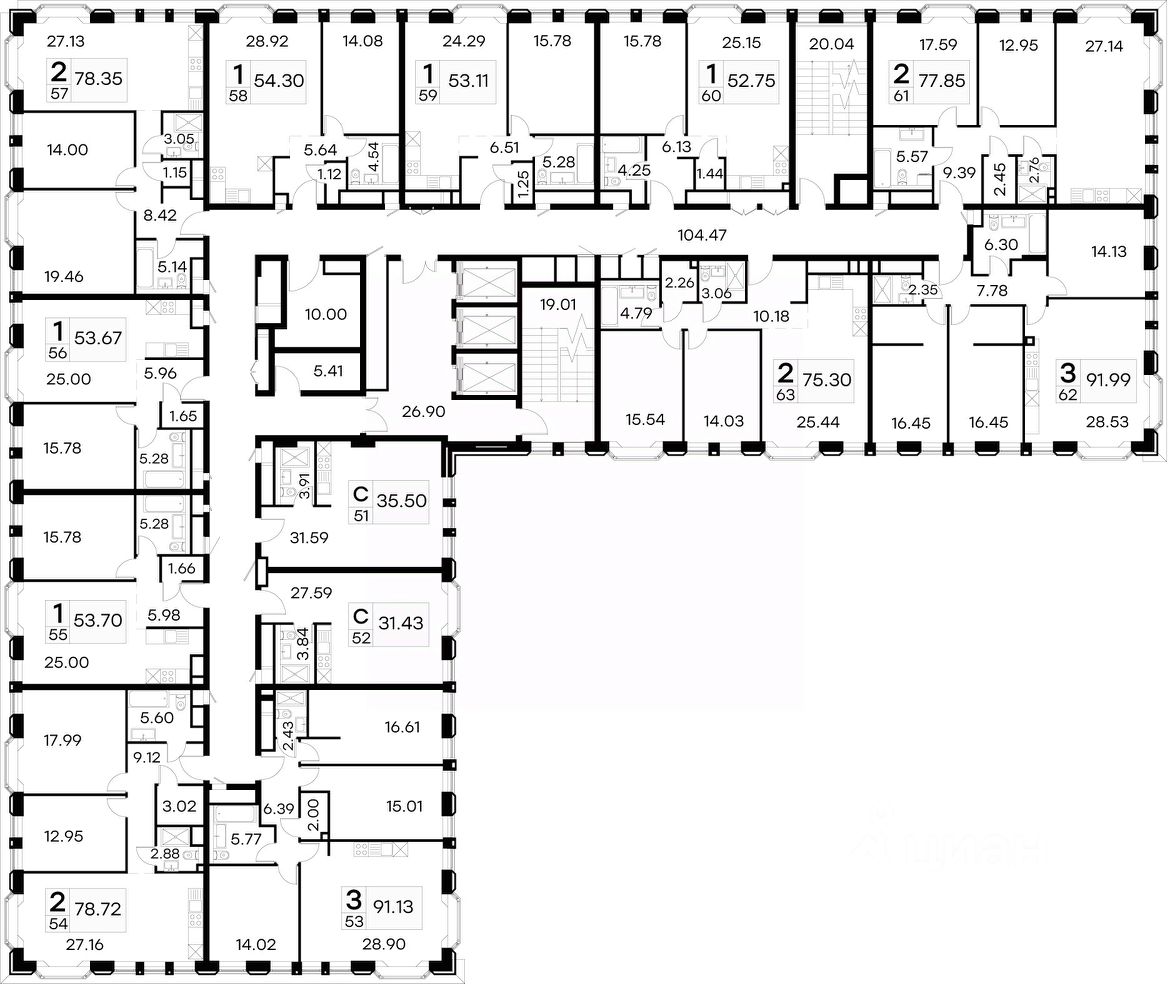 Продается 3-комн. апартамент на 6-м этаже в клубном доме премиум-класса GloraX Premium Белорусская. Общая площадь лота составляет 91,13 кв. м, из которых 45,64 кв. м отведено под жилую зону. Номер апартамента - 53.