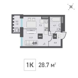 Продаётся 1-комнатная квартира в строящемся доме (Корпус 3), срок сдачи: IV-кв. 2026, общей площадью 28.7 кв.м., на 7 этаже. Жилой дом со встроенными нежилыми помещениями и подземной автостоянкой, расположенный по адресу: г. Москва, внутригородское муниципальное образование Матушкино, г. Зеленоград