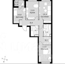 Планировка: Мастер-спальня (гардероб, санузел) с видом на просторный двор-парк, детская комната, гостиная, отдельно кухня и гостевой санузел. Комнаты изолированные (15,3-13,9-10 кв.м.), кухня 13,9 кв.м. Высота потолков 3м.