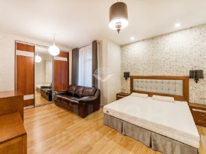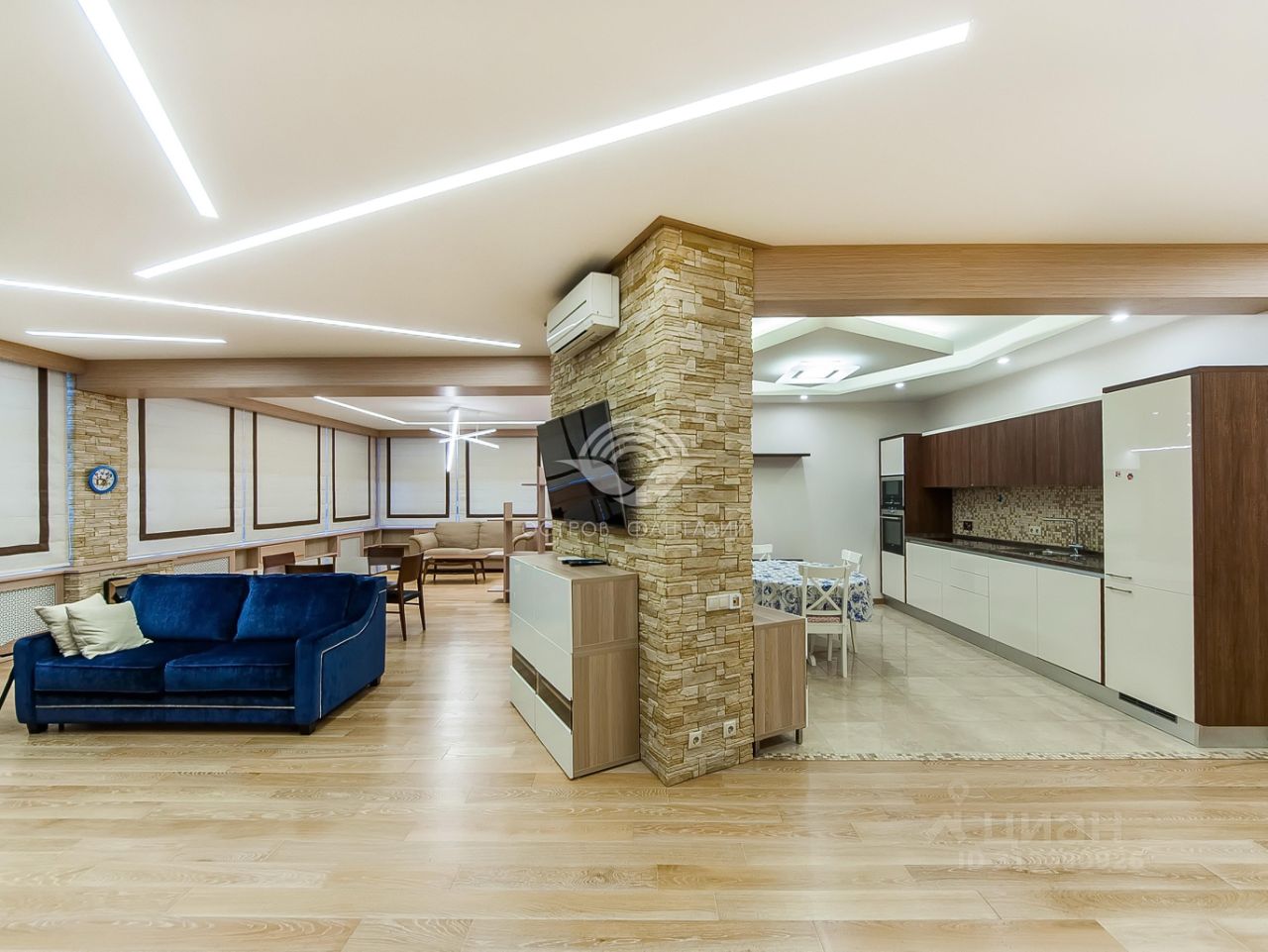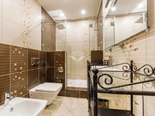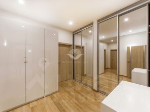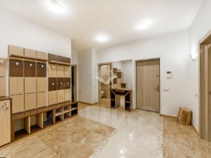 В квартире выполнен евроремонт с использованием качественных материалов. Жилые комнаты просторные и светлые, с окнами на улицу. Имеется один балкон. В квартире есть два совмещенных и один отдельный санузел, что очень удобно для большой семьи. На кухне установлен современный кухонный гарнитур SCAVOLINI с техникой от ведущих мировых производителей. Планировка: прихожая, гостевой с/у, гардеробная, постирочная комната, которую можно переоборудовать в еще одну спальню, кухня-гостиная, две детские комнаты, детская ванная, основная спальня с с/у.